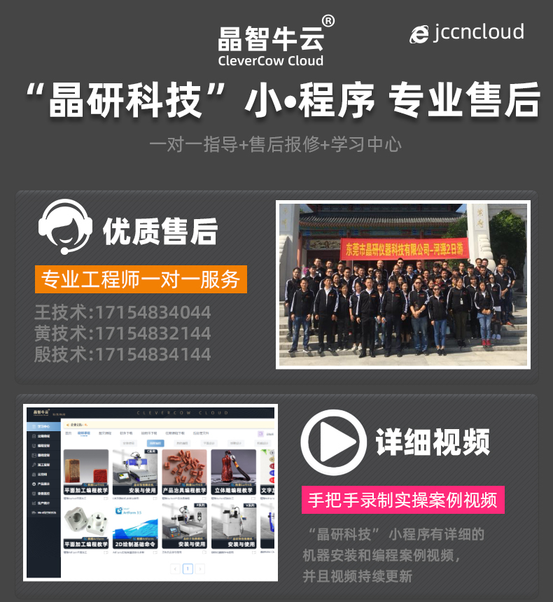 晶研M系列桌面雕刻機(jī)提供多種功率選擇,適應(yīng)不同硬度材料加工需求。其高精度編碼限位系統(tǒng)、高速閉環(huán)電機(jī)和智能驅(qū)動卡,確保了加工的精度、速度和節(jié)能效果。此外,晶智牛云系統(tǒng)和手機(jī)小程序?yàn)橛脩籼峁┝吮憬莸慕虒W(xué)和售后服務(wù),使其成為工業(yè)應(yīng)用的理想選擇。