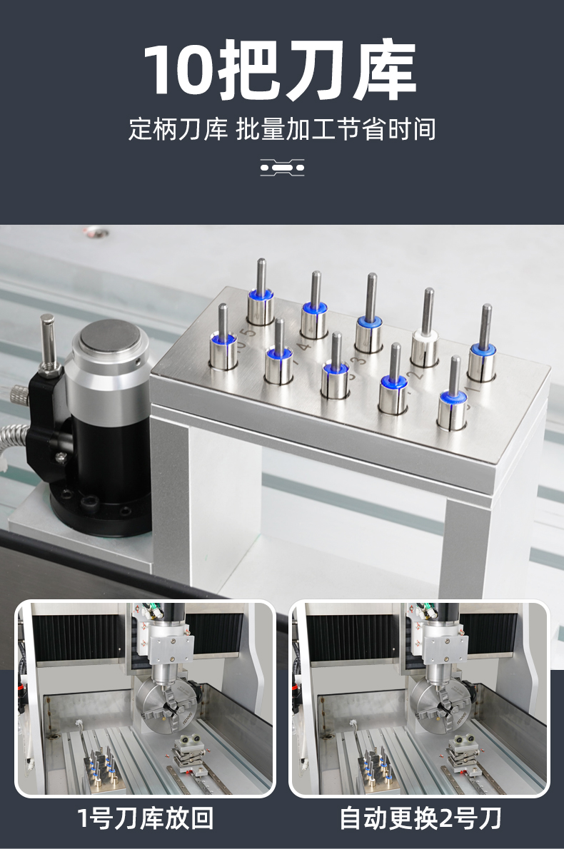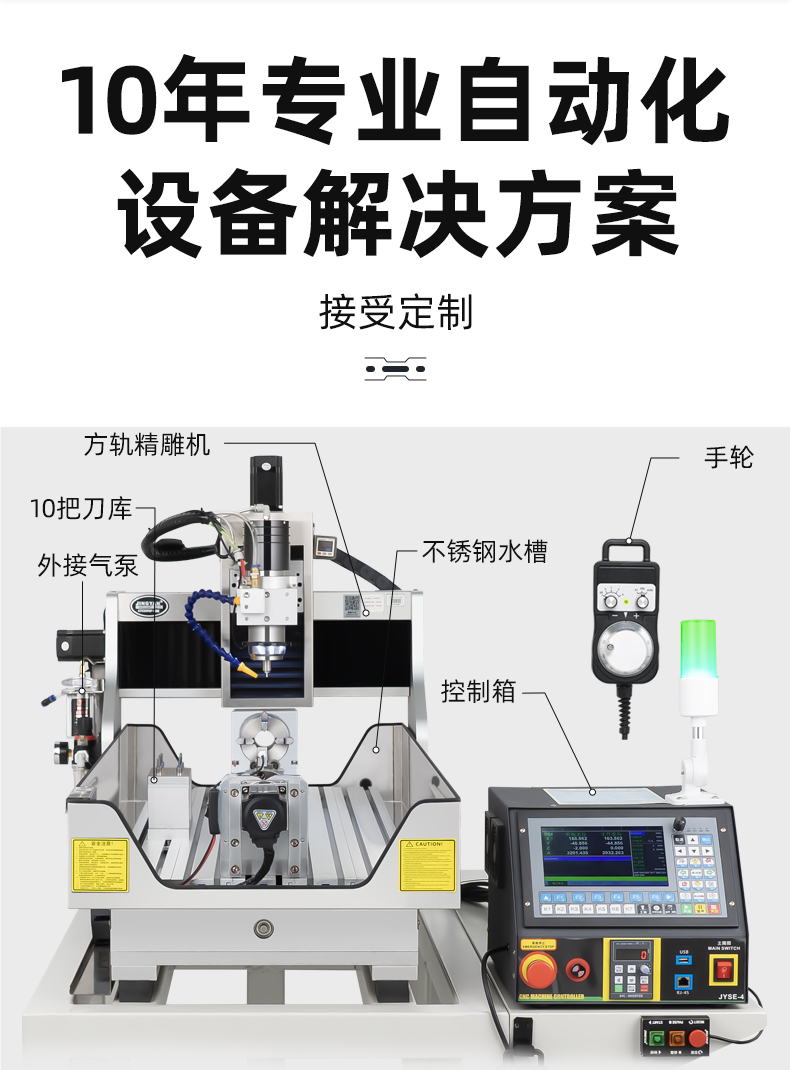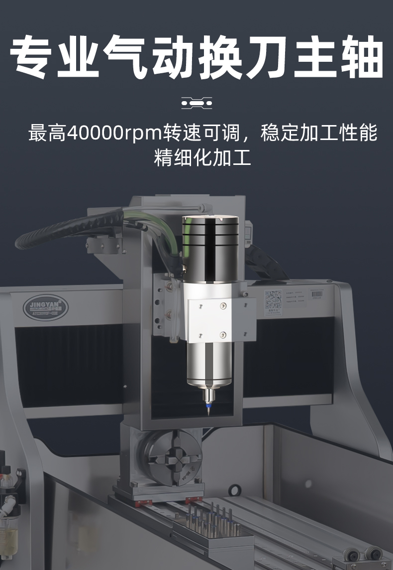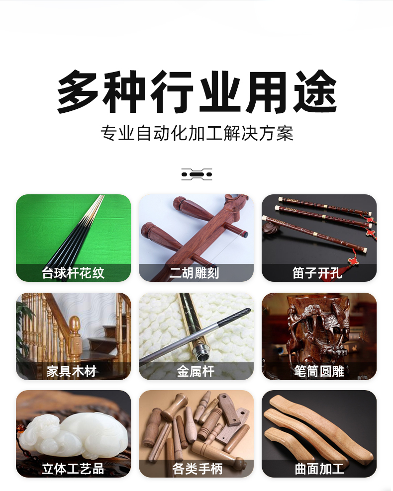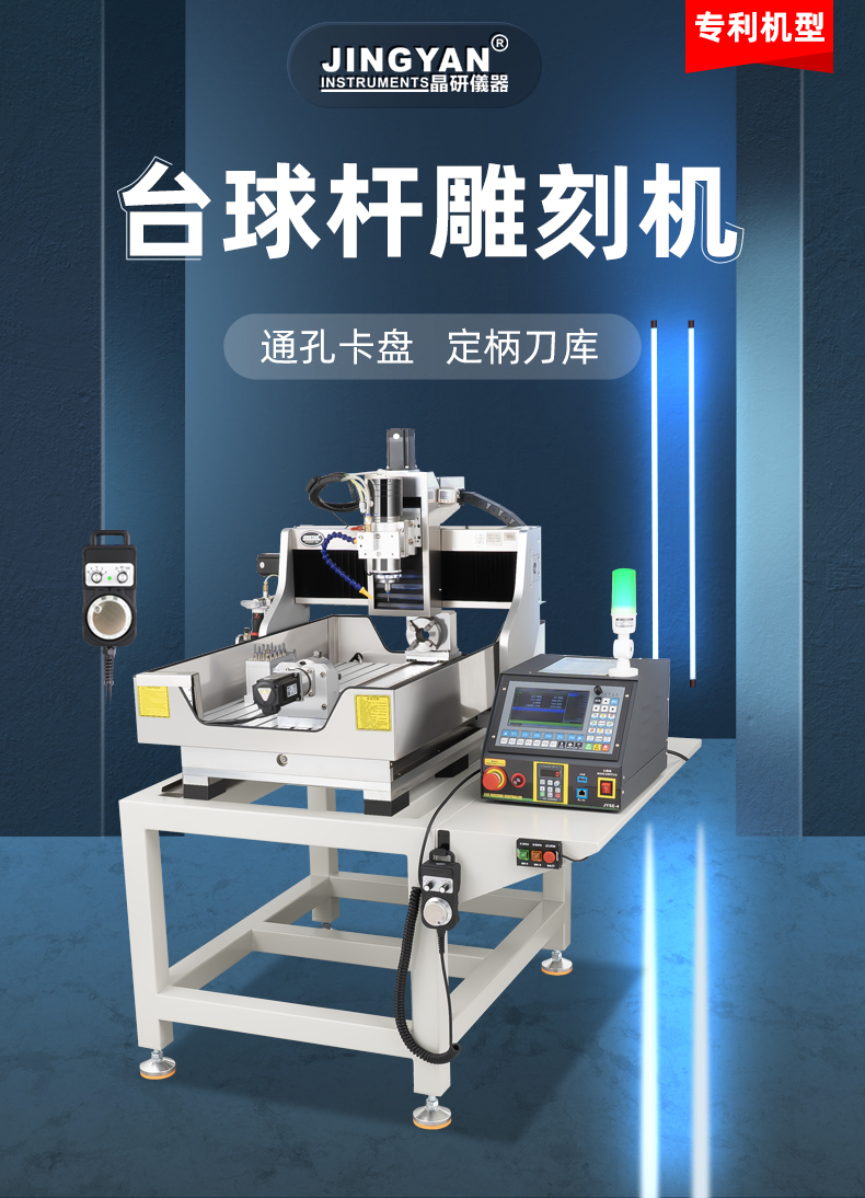 晶研F系列臺球桿雕刻機(jī)具備多種實用功能,適用于臺球桿、二胡、笛子等多種材料的精細(xì)加工,設(shè)備配備專業(yè)氣動換刀主軸,最高轉(zhuǎn)速達(dá)40000rpm,確保加工的穩(wěn)定性和精度,自動換刀系統(tǒng)和通孔大卡盤設(shè)計,支持更粗更長的工件裝夾,前后可調(diào)尾頂和滑動可調(diào)升降臺,提供微調(diào)和穩(wěn)定支撐,六大特性包括高效、智能、穩(wěn)定、高精度、專業(yè)配置和一對一售后服務(wù),脫機(jī)控制系統(tǒng)實現(xiàn)無需電腦的批量加工,解放人工,設(shè)備正面和背面均設(shè)有控制面板,操作簡便。