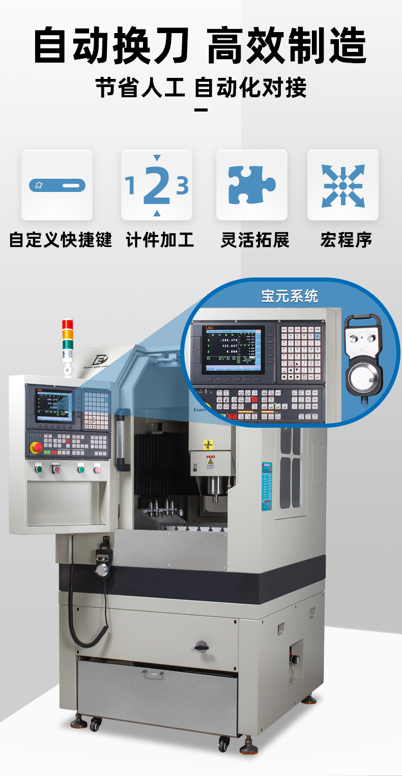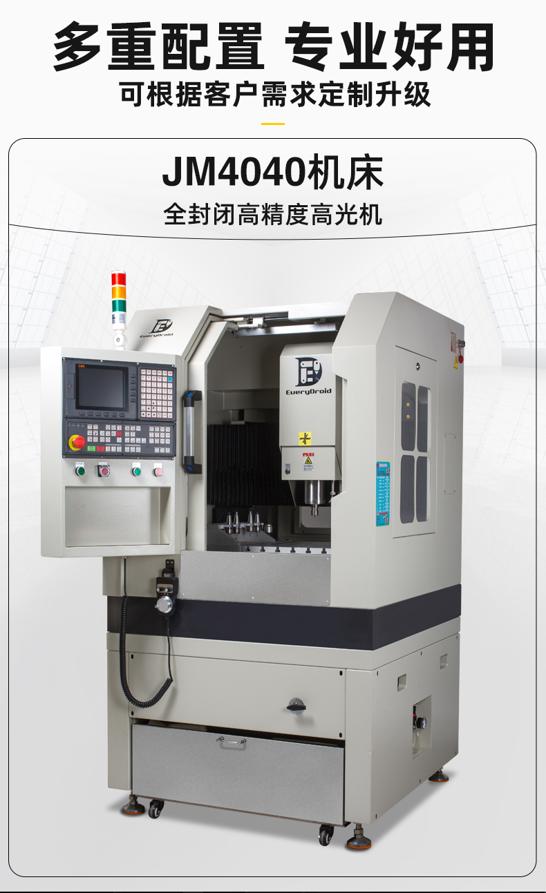 晶研JM4040高精度高光機(jī),配備大理石機(jī)身與精密研磨絲桿,確保加工穩(wěn)定性與精度。自動換刀與寶元控制系統(tǒng)實現(xiàn)高效智能操作。多層過濾系統(tǒng)保障設(shè)備持久運行。適用于鋁合金、陶瓷、碳纖維等多種材料,滿足精密零件加工需求,是制造業(yè)的精密之選。