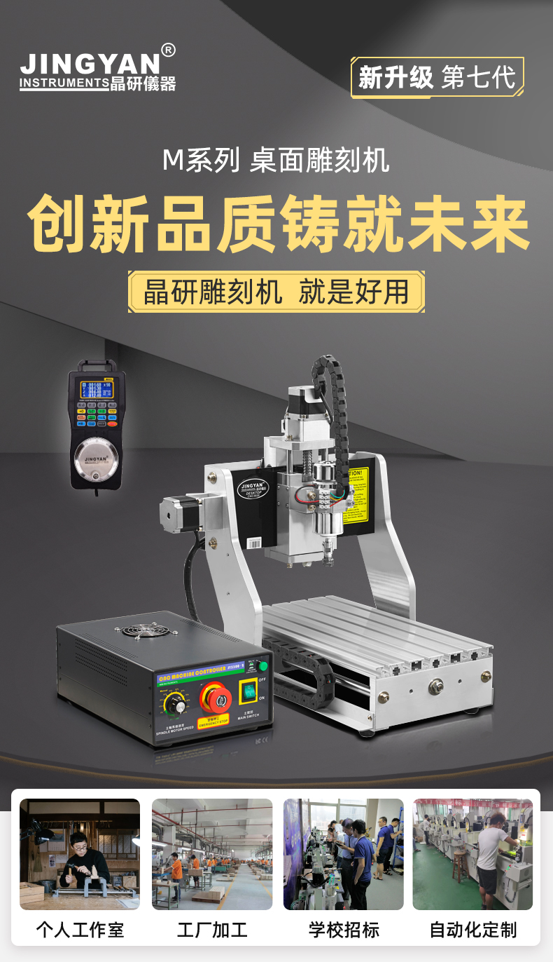 晶研M系列桌面雕刻機提供多種功率選擇,適應(yīng)不同硬度材料加工需求。其高精度編碼限位系統(tǒng)、高速閉環(huán)電機和智能驅(qū)動卡,確保了加工的精度、速度和節(jié)能效果。此外,晶智牛云系統(tǒng)和手機小程序為用戶提供了便捷的教學(xué)和售后服務(wù),使其成為工業(yè)應(yīng)用的理想選擇。