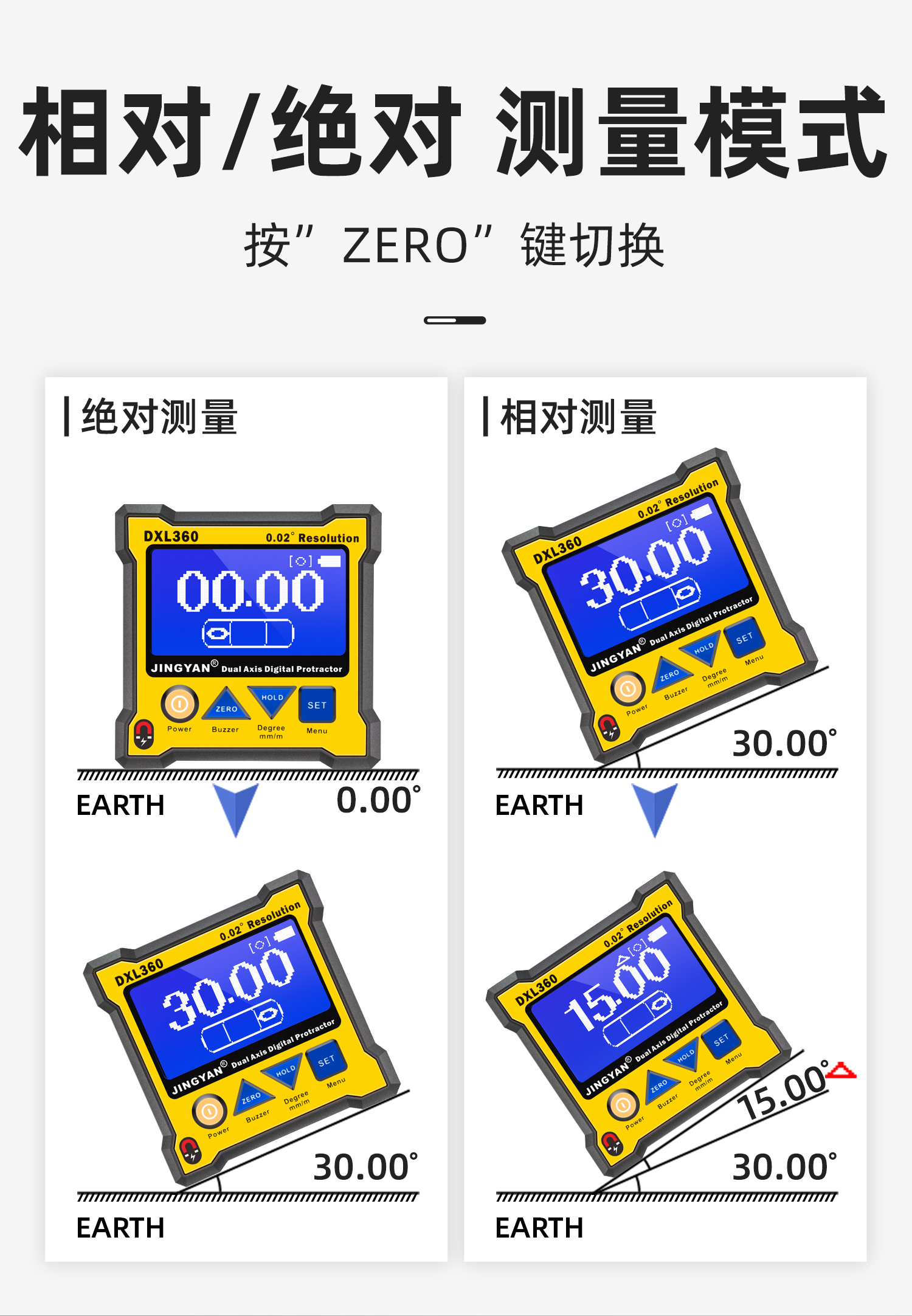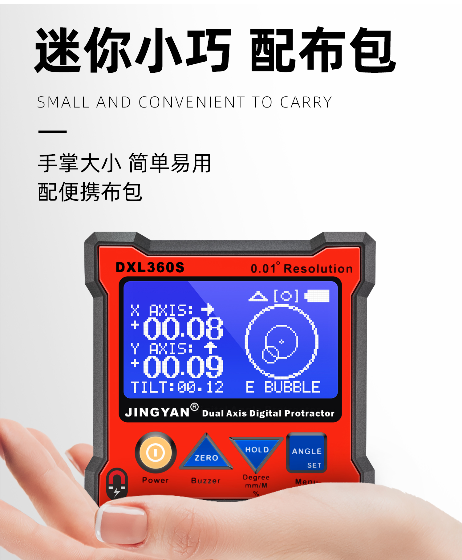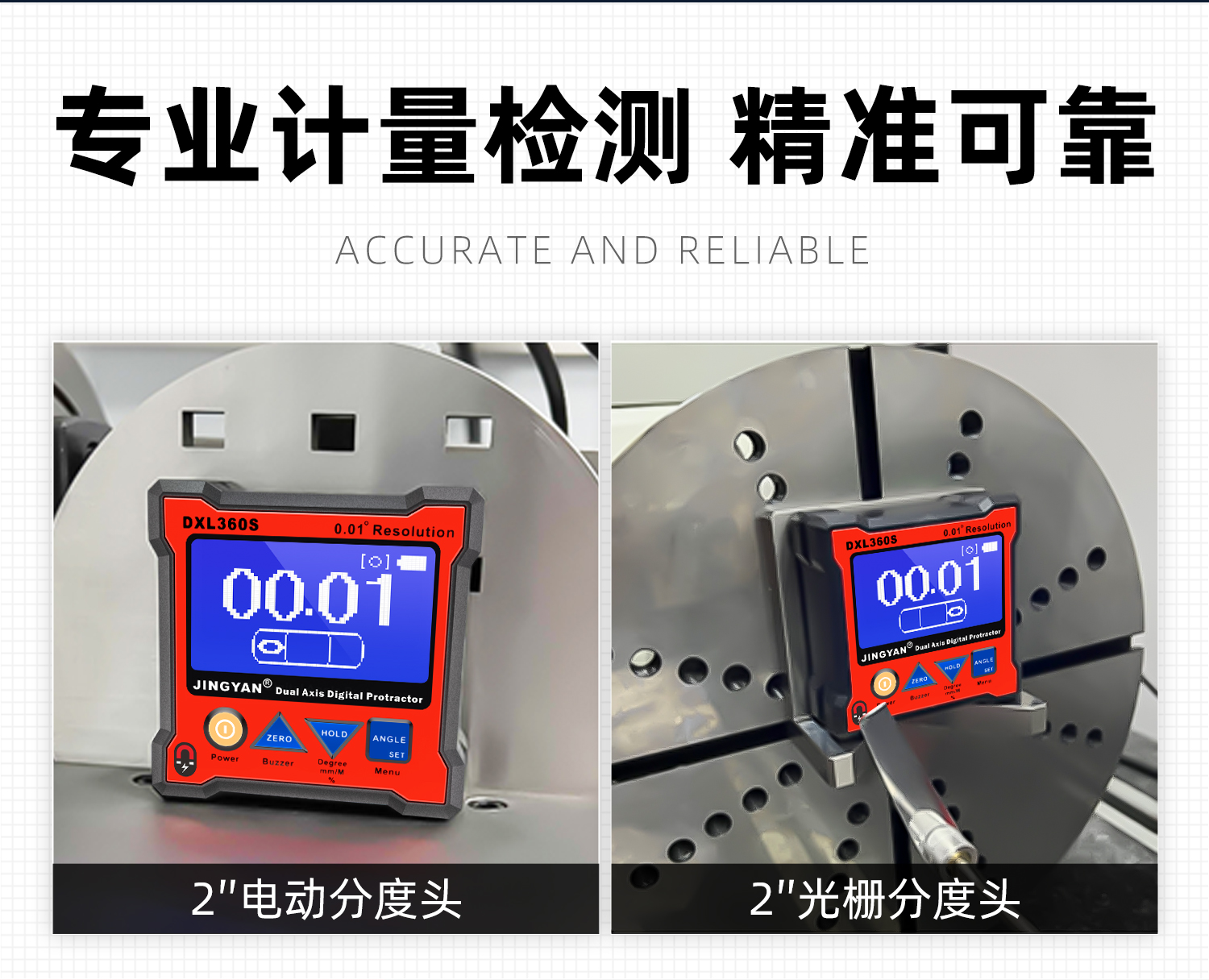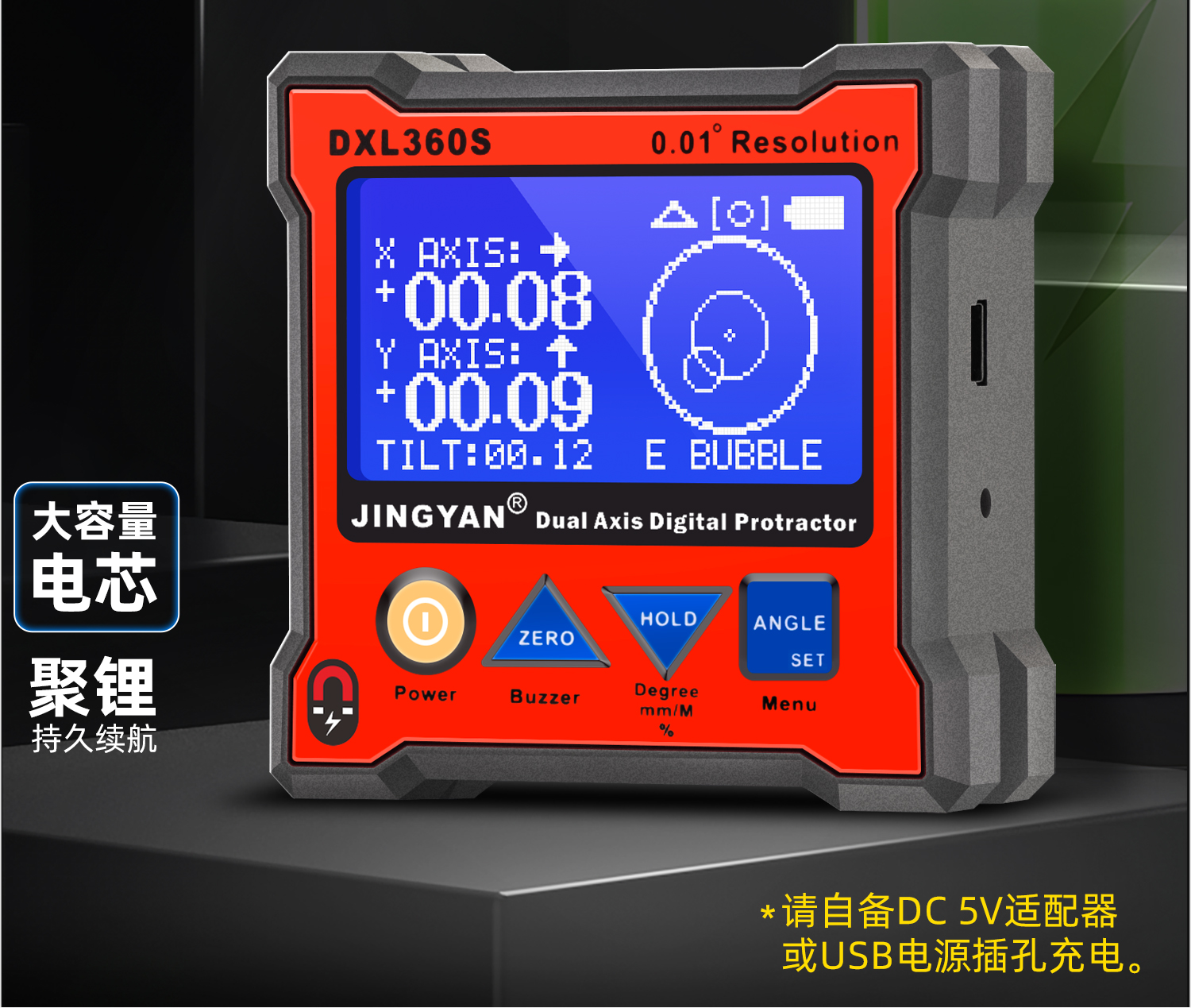 DXL360/S是一款專業(yè)測量水平和空間相對夾角(*DXL360S專有)的高精度數(shù)顯傾角儀/水平儀,它基于微機電系統(tǒng)(MEMS)的先進技術,結合優(yōu)化的補償模型算法,保證傾角儀測量的穩(wěn)定性和重復性。DXL360S精度高達0.05°,分辨率0.01°,可以采用3種測量單位顯示(角度、毫米/米、斜率),特有的空間相對夾角功能(GYRO),可不受環(huán)境限制,測量任意平面之間相對夾角,陀螺儀測量精度±0.5°。DXL360實現(xiàn)最好精度0.1°,分辨率0.02°,可以采用2種測量單位顯示(角度、毫米/米)。DXL360/S支持單軸4×90°,雙軸±40°測量,底部和背部測量基準面有強磁性,V型凹槽設計便于放置在圓管上進行測量。雙重數(shù)據存儲功能,連接電腦或手機進行數(shù)據傳輸。DXL360/S廣泛應用于機械制造、汽車維修、醫(yī)療行業(yè)、木材加工、通訊檢測、家居裝潢等用途。DXL360/S以其豐富的功能和實用性,廣受全球客戶青睞。