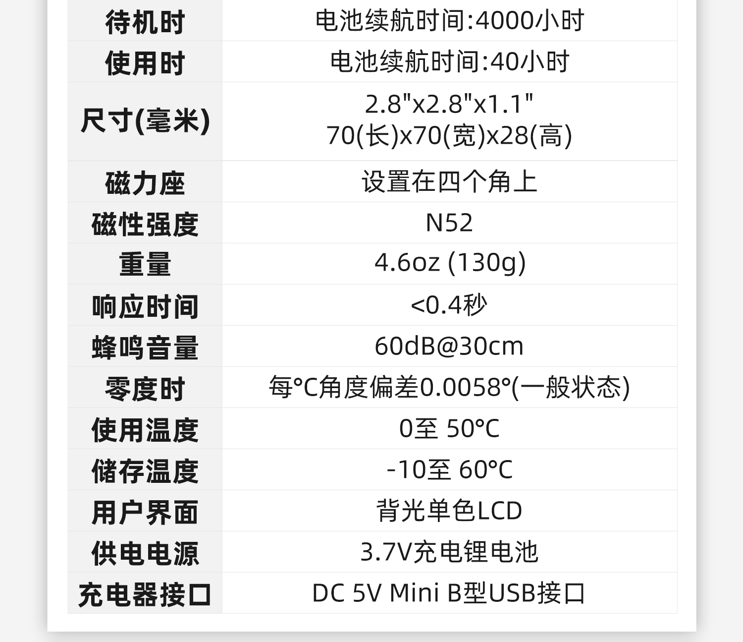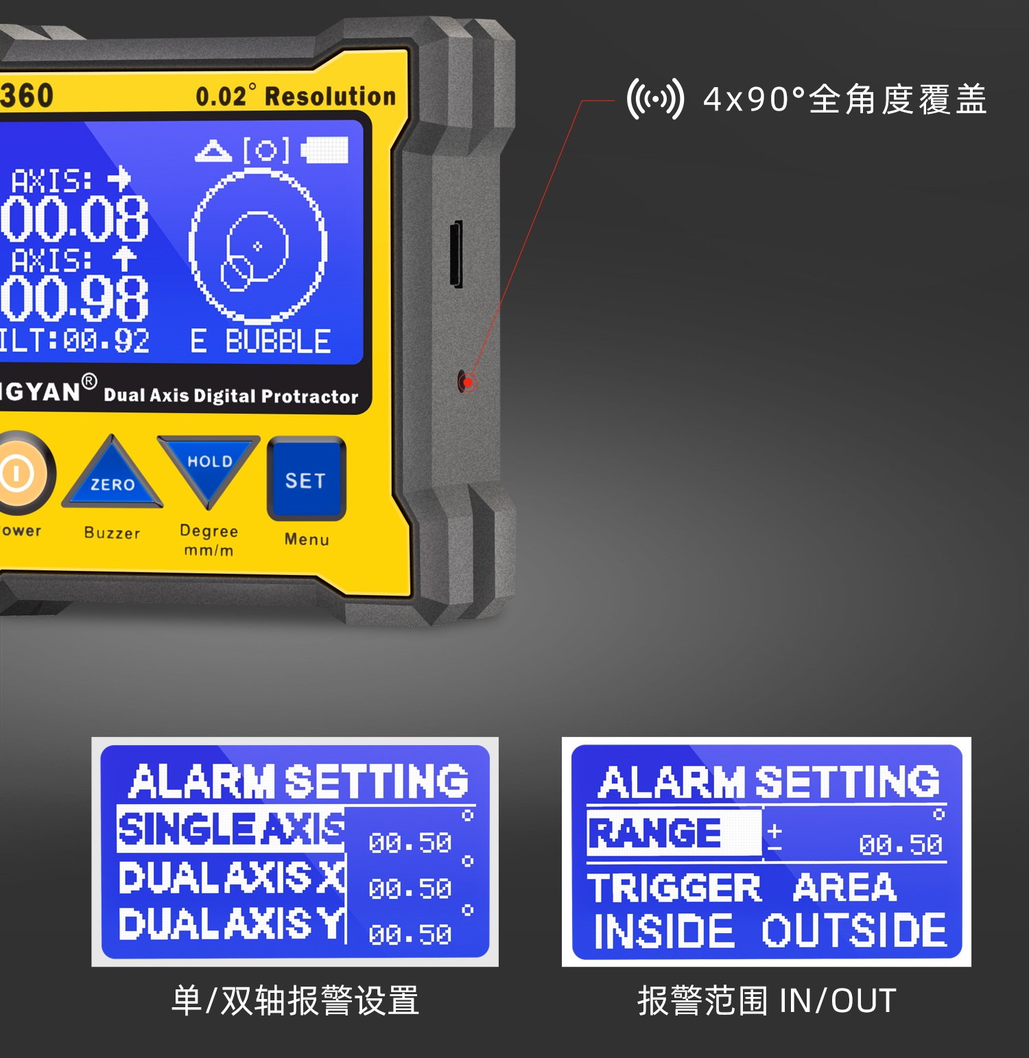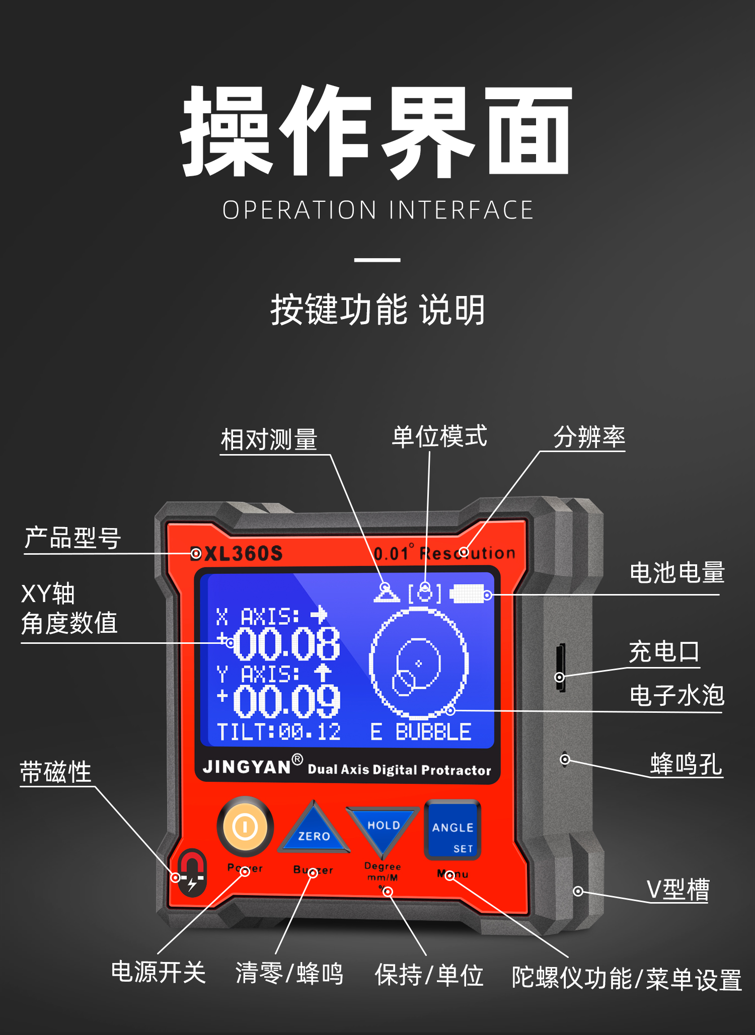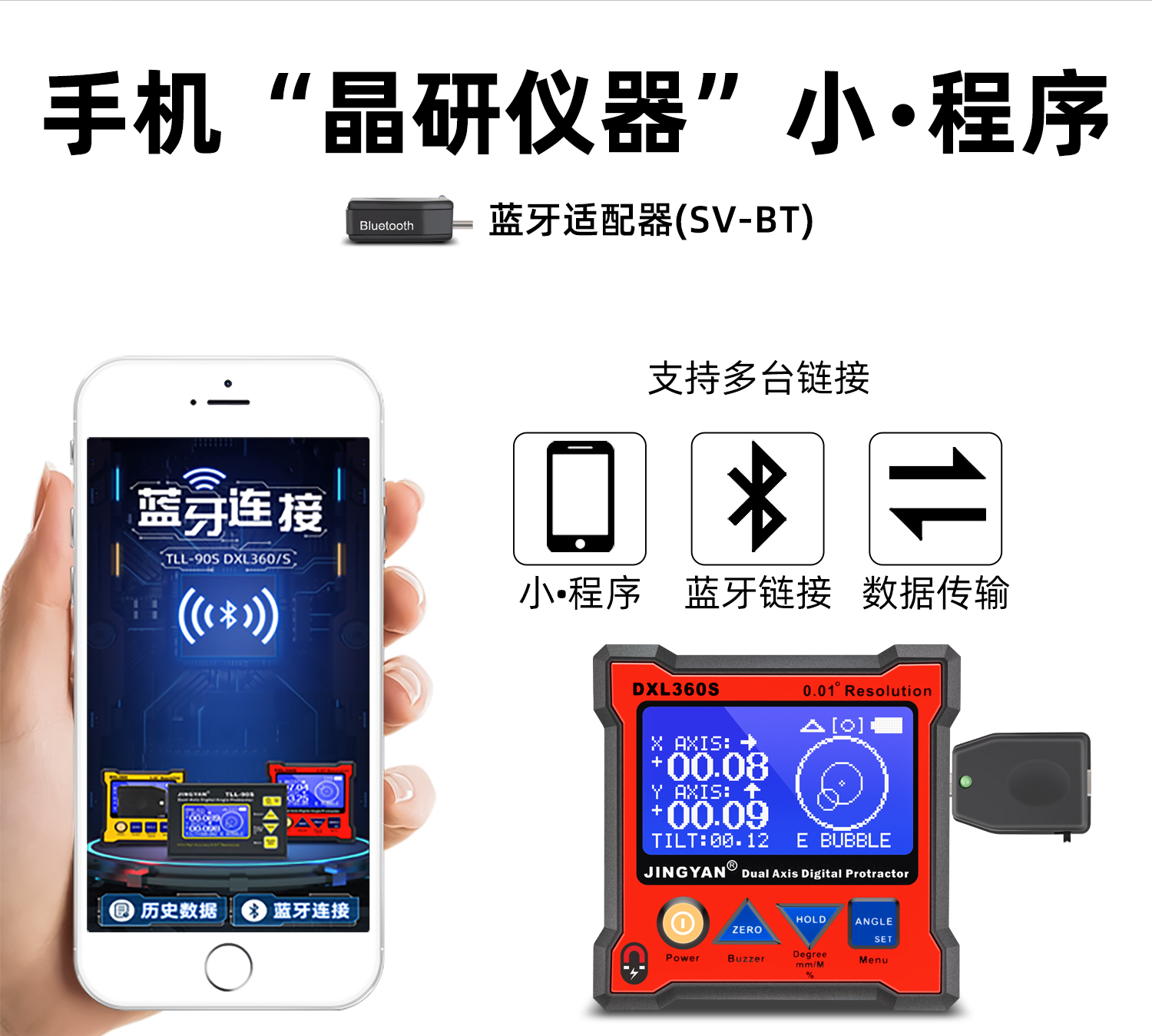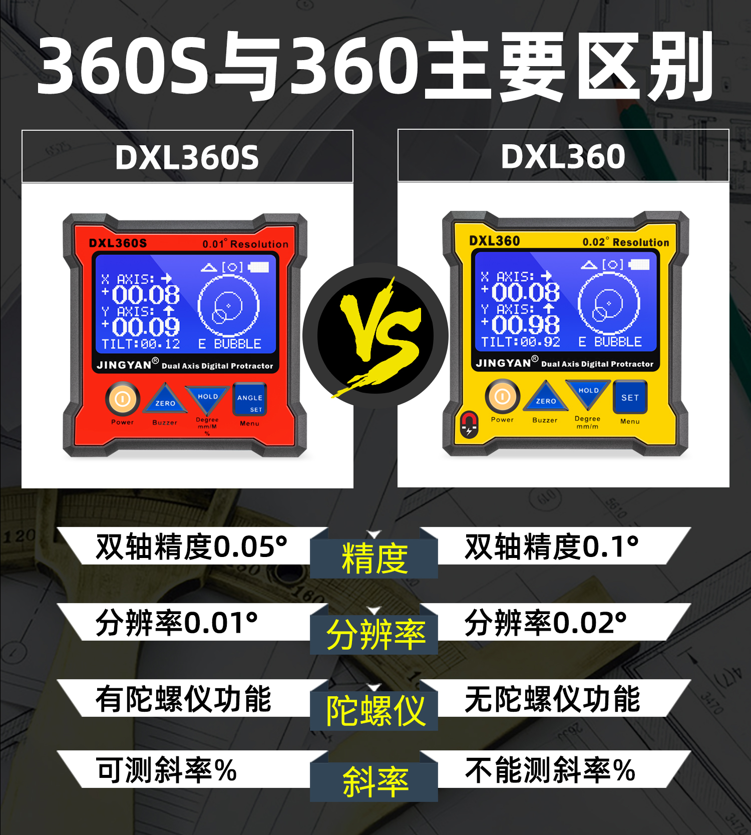 DXL360/S是一款專業(yè)測量水平和空間相對夾角(*DXL360S專有)的高精度數(shù)顯傾角儀/水平儀,它基于微機電系統(tǒng)(MEMS)的先進技術,結合優(yōu)化的補償模型算法,保證傾角儀測量的穩(wěn)定性和重復性。DXL360S精度高達0.05°,分辨率0.01°,可以采用3種測量單位顯示(角度、毫米/米、斜率),特有的空間相對夾角功能(GYRO),可不受環(huán)境限制,測量任意平面之間相對夾角,陀螺儀測量精度±0.5°。DXL360實現(xiàn)最好精度0.1°,分辨率0.02°,可以采用2種測量單位顯示(角度、毫米/米)。DXL360/S支持單軸4×90°,雙軸±40°測量,底部和背部測量基準面有強磁性,V型凹槽設計便于放置在圓管上進行測量。雙重數(shù)據存儲功能,連接電腦或手機進行數(shù)據傳輸。DXL360/S廣泛應用于機械制造、汽車維修、醫(yī)療行業(yè)、木材加工、通訊檢測、家居裝潢等用途。DXL360/S以其豐富的功能和實用性,廣受全球客戶青睞。