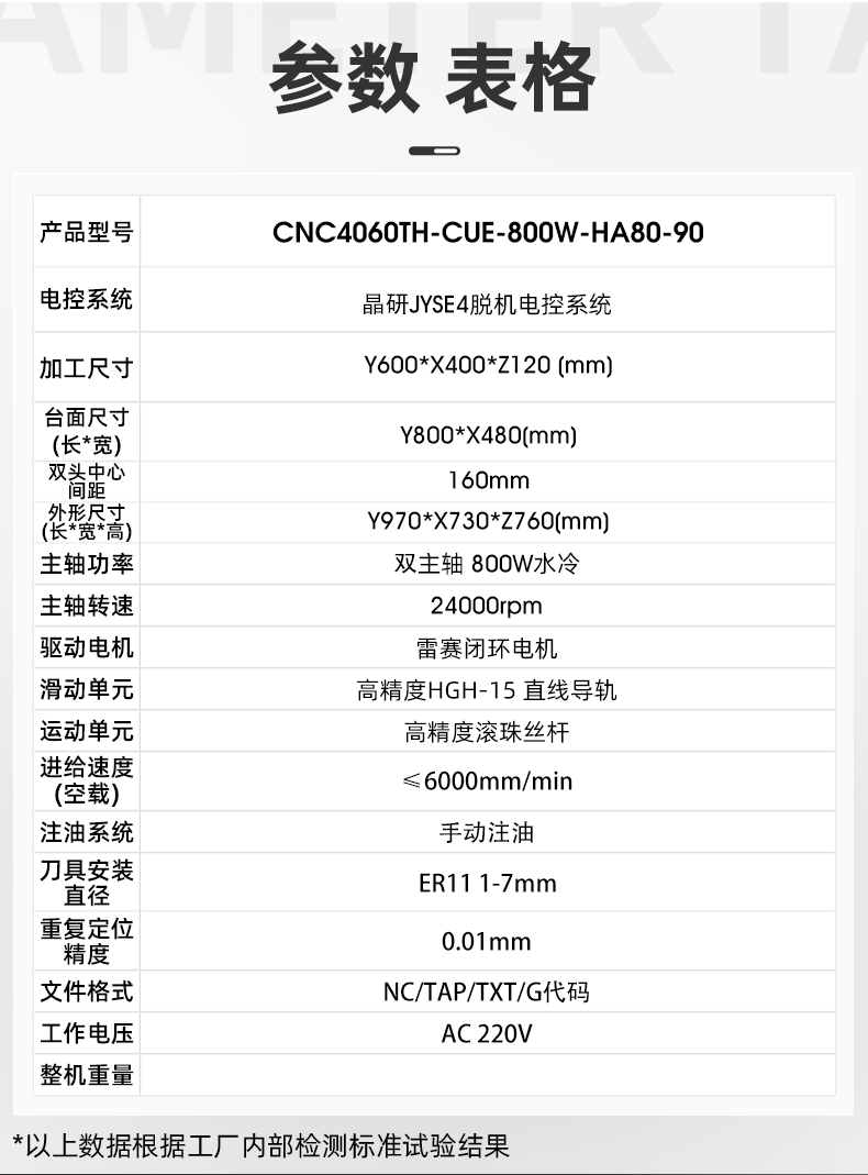 該設備采用雙主軸同步加工的設計,兩個800W水冷主軸,可以安裝不同刀具,對于兩個工序的加工,可以實現不停機連續(xù)加工,大大提升加工效率,適用更多應用場景;升級高精度滾珠絲桿和直線導軌,精度高,支持批量加工生產,性能穩(wěn)定;配套雷賽閉環(huán)電機,可實現6000mm/min的加工速度同時支持自動對刀加工,節(jié)省人工,滿足高效加工生產需求;晶研JYSE4專業(yè)版脫機系統(tǒng)無需鏈接電腦,U盤讀取程序。支持斷電續(xù)雕,跳行加工,手輪引導,一鍵啟停等功能,批量加工,簡單實用;主軸循環(huán)水冷系統(tǒng),自主設計干凈環(huán)保。主軸高速運行,循環(huán)冷卻液可以快速帶走主軸熱量,支持長時間運行,主軸冷卻效果非常好。